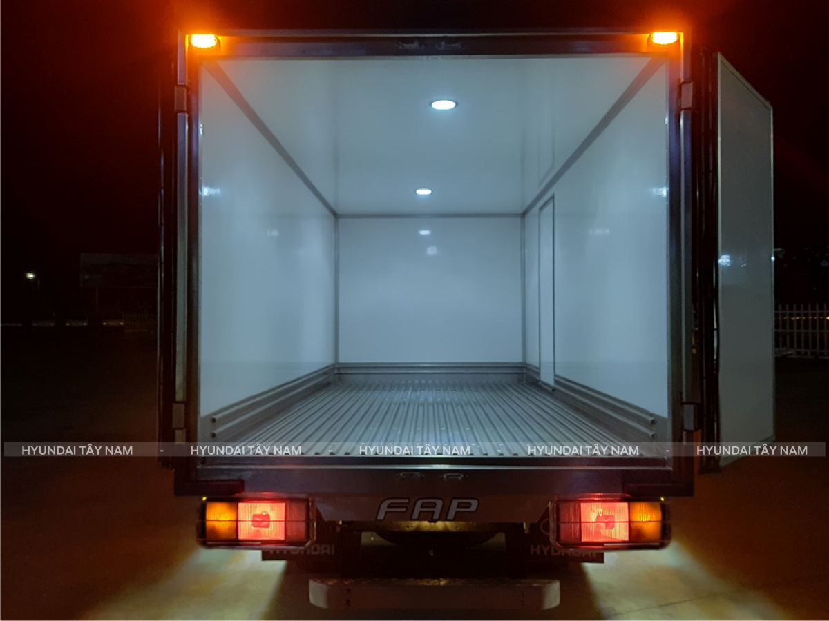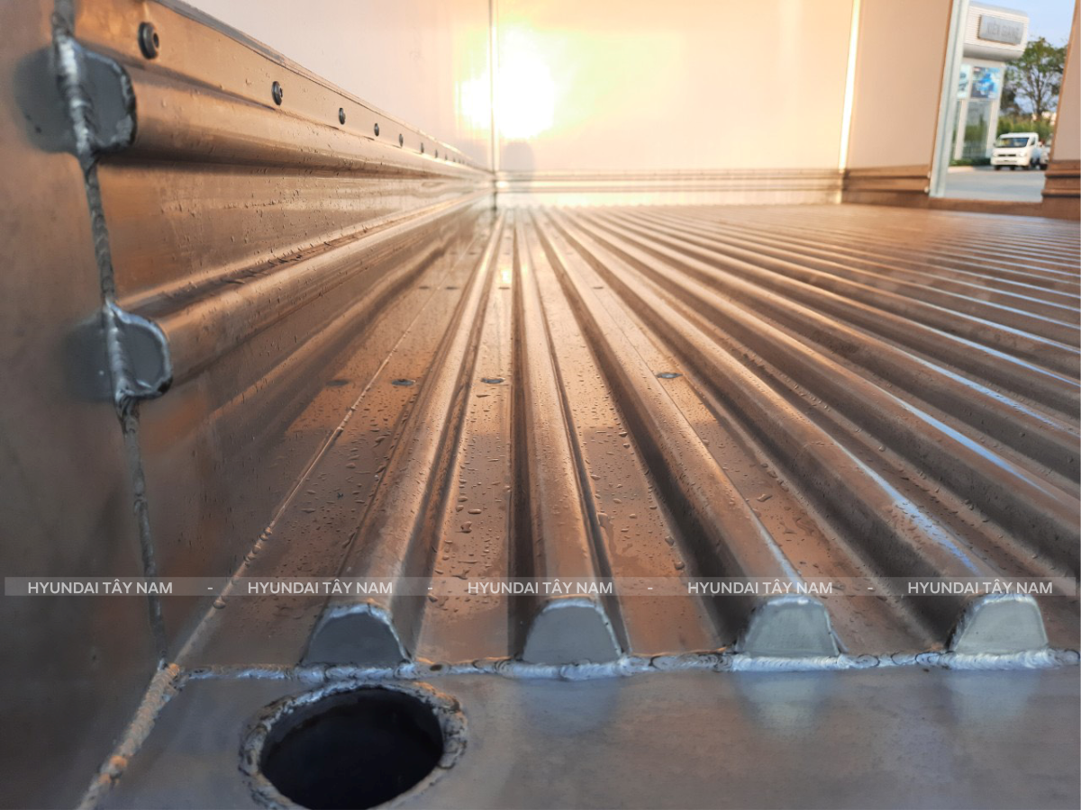Đối với những chiếc xe tải đông lạnh luôn phải chở những mặt hàng có độ ẩm nước, có nước thậm chí là nước muối... nên nếu sàn thùng không tốt rất dễ bị hoen gỉ. Hiểu được điều này nên xe tải N250 SL đông lạnh do Hyundai Tây Nam phân phối có sàn thùng dày 105mm được kết cấu bằng composite – foam - inox 304 dập sóng dày 1,2mm giúp sàn xe chống gỉ và chắc chắn hơn nhiều so với sàn xe cùng phân khúc sử dụng vật liệu khác.