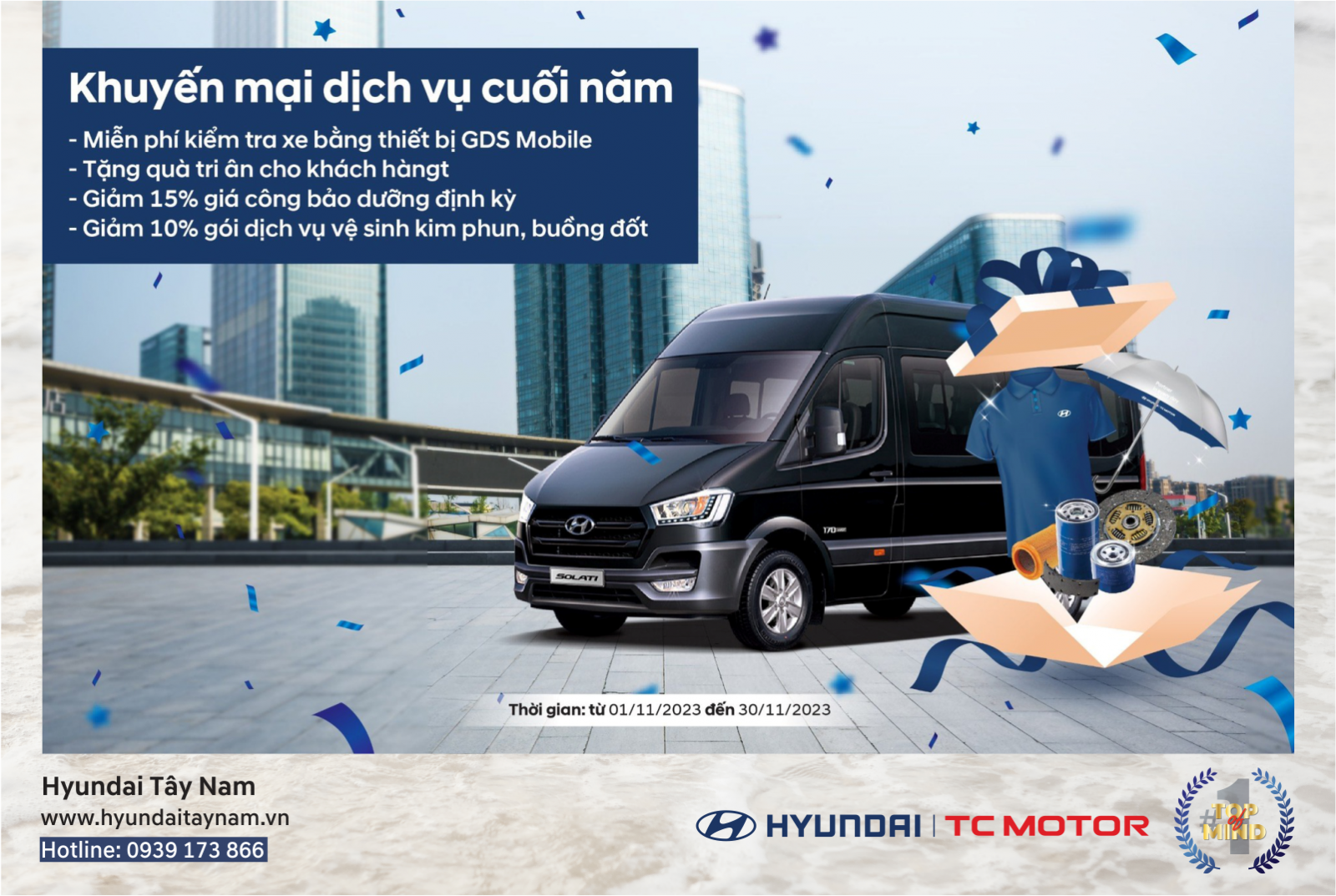 Hyundai Tây Nam ưu đãi dịch vụ tháng 11 dành cho các khách hàng: