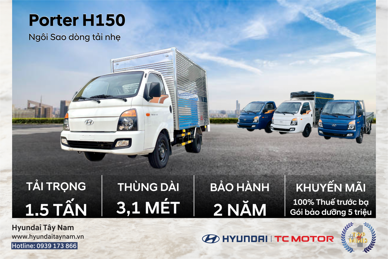 Hãy liên hệ ngay cho Hyundai Tây Nam để được tư vấn các dòng xe tải phù hợp với nhu cầu và nhận được những ưu đãi hấp dẫn bạn nhé.