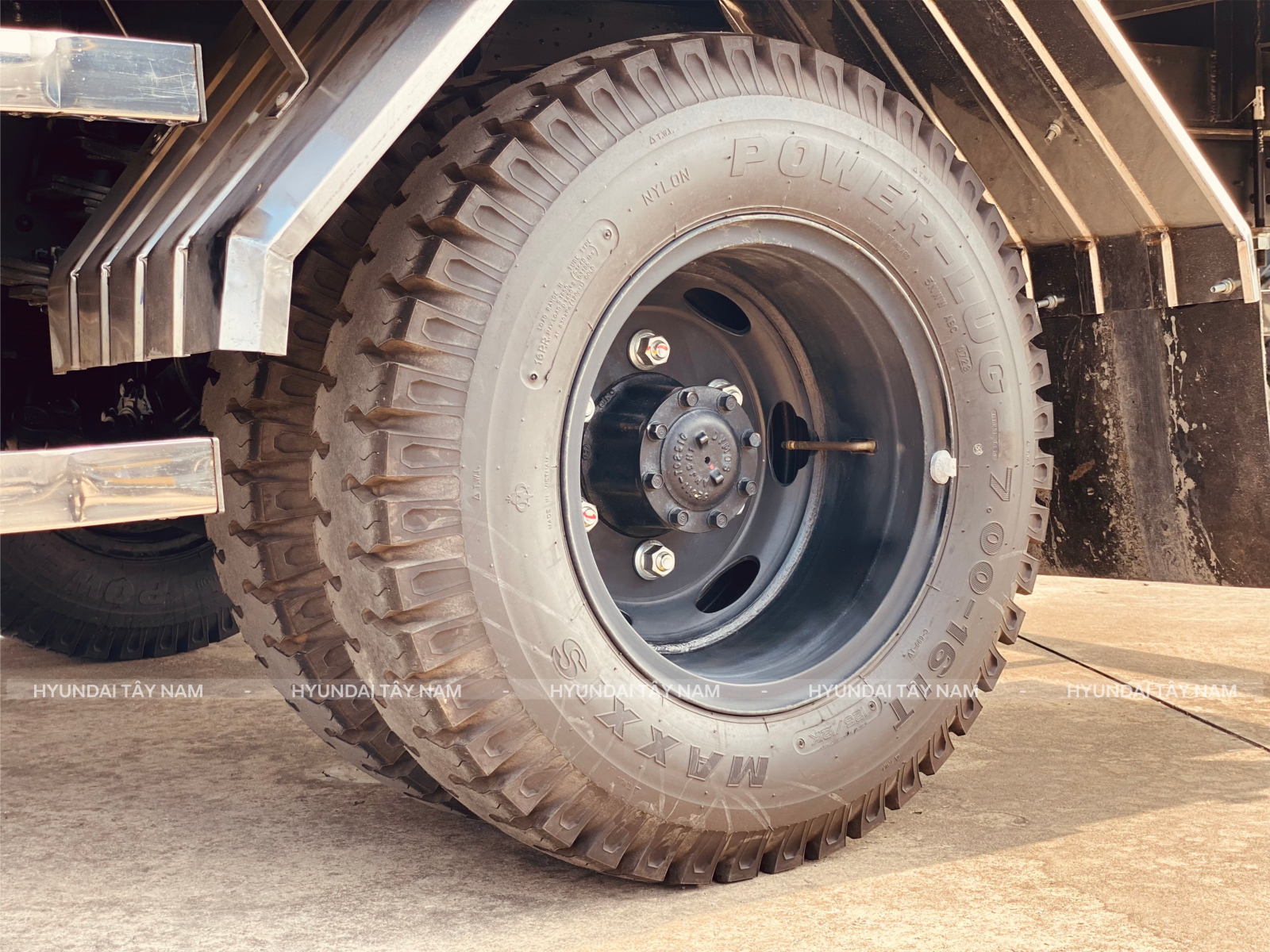 Ngoài ra xe trang bị lốp to 7.00-16 ở cả 2 cầu trước và cầu sau giúp xe linh hoạt, dễ dàng đi chuyển hơn trên những cung đường kho khăn, đèo dốc, mấp mô.