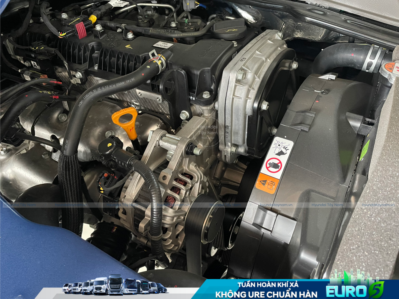 Một trong những điểm vượt trội của Hyundai H150 Euro 5 đó là được trang bị hệ thống tuần hoàn kí thải EGR – công nghệ tiên phong của Hyundai trong nỗ lực giảm thiểu phát thải từ động cơ đốt trong. EGR kết hợp hệ thống ống xả tích hợp bộ xúc tác và bộ lọc hạt giúp giảm thiểu các chất gây ô nhiễm thải ra môi trường. Đồng thời, tính năng này còn góp phần giúp tăng hiệu suất và tiết kiệm nhiên liệu đáng kể. Xe được trang bị hệ thống tuần hoàn khí xả EGR không sử dung dịch u rê giúp cho khách hàng sử dụng xe không tốn thời gian và tiết kiệm chi phí vận hành trong quá trình sử dụng xe.