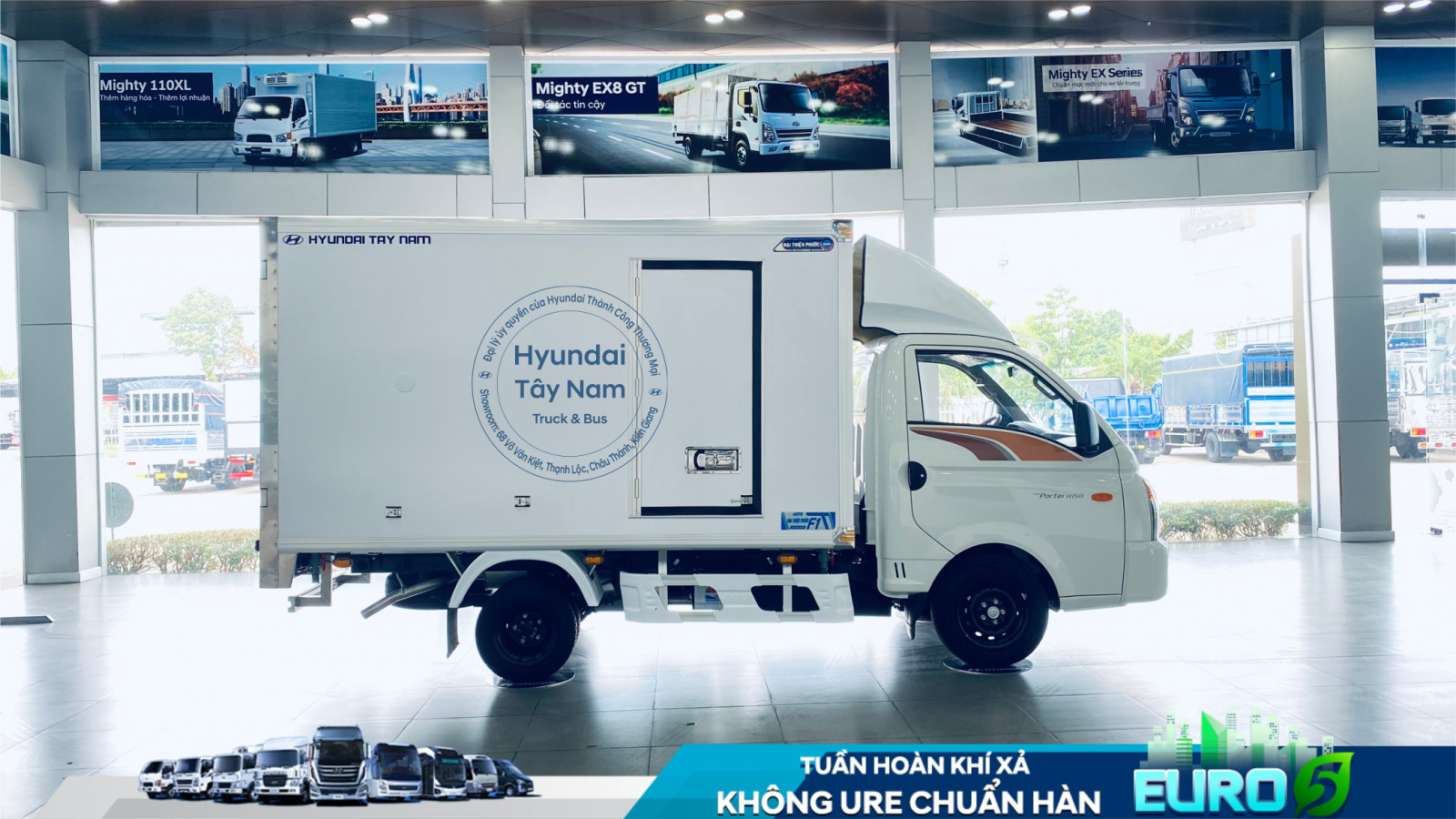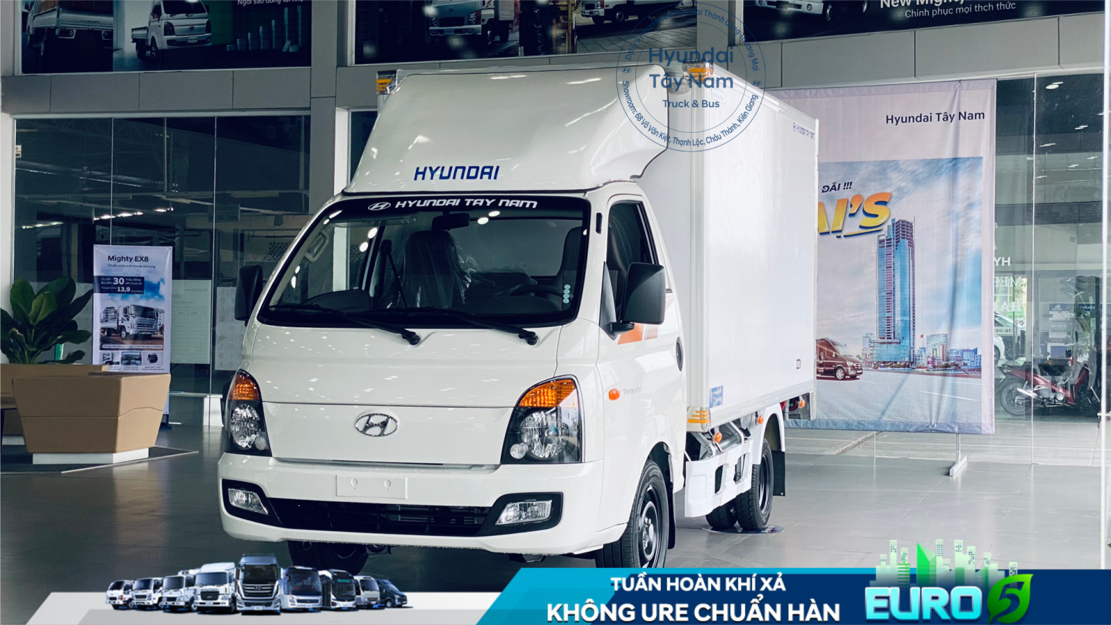 Xe tải Hyundai H150 E5 tại Hyundai Tây Nam được thiết kế riêng cho khách hàng có nhu cầu vận tải nhỏ lẻ, nhưng chủ yếu vẫn là đáp ứng chu cầu di chuyển trong nội ô của các thành phố lớn đông đúc. Xe tải Hyundai H150 E5 có đầy đủ những yếu tố có thể vào thành phố ban ngày, thùng dài hơn 3 mét, bán kính quay vòng nhỏ, có thể di chuyển linh hoạt ở các con đường nhỏ hẹp trong thành phố.