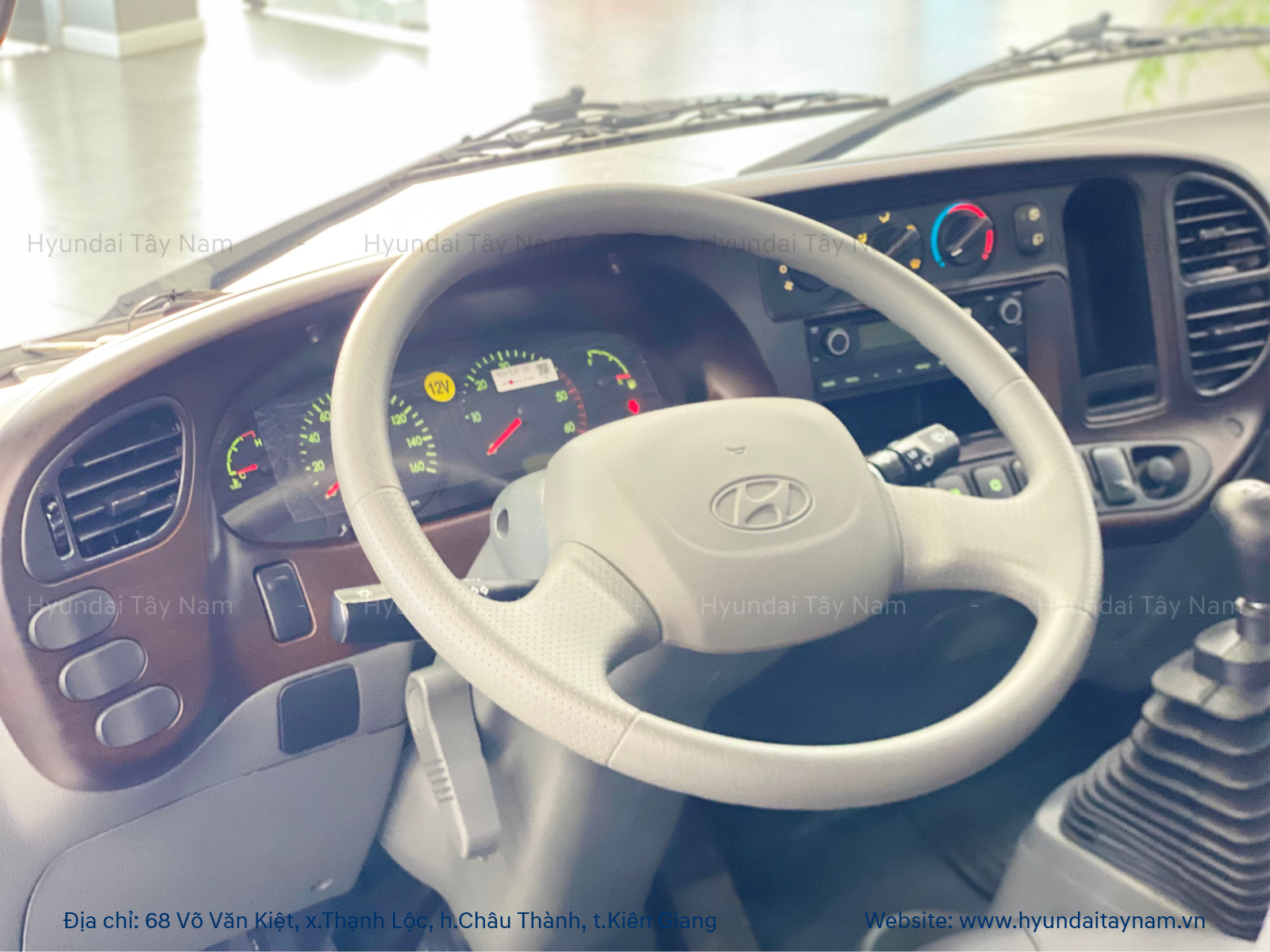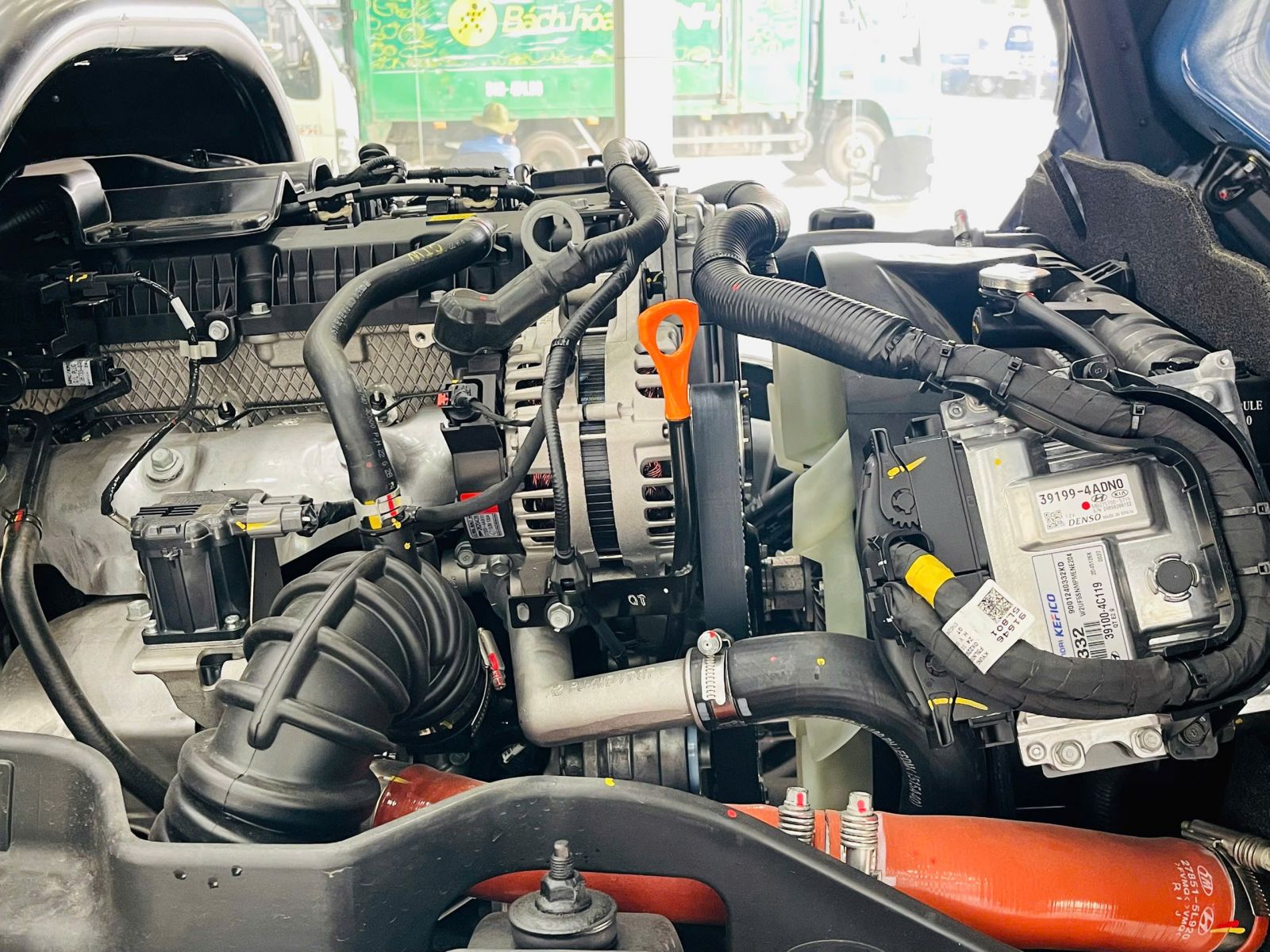 Nằm bên trong vẻ ngoài nhỏ gọn là khối động cơ diesel D4CC, dung tích 2.9L, cho công suất 160 mã lực tại vòng tua 2.700 vòng/phút. Điểm nổi bật là mô-men xoắn cực đại 392 Nm, cho phép xe vượt đèo, leo dốc hoặc chở tải nặng mà không bị hụt hơi. Điều này cực kỳ quan trọng khi di chuyển liên tỉnh, đường dài, hoặc vào khu vực địa hình phức tạp như cao nguyên, miền núi.