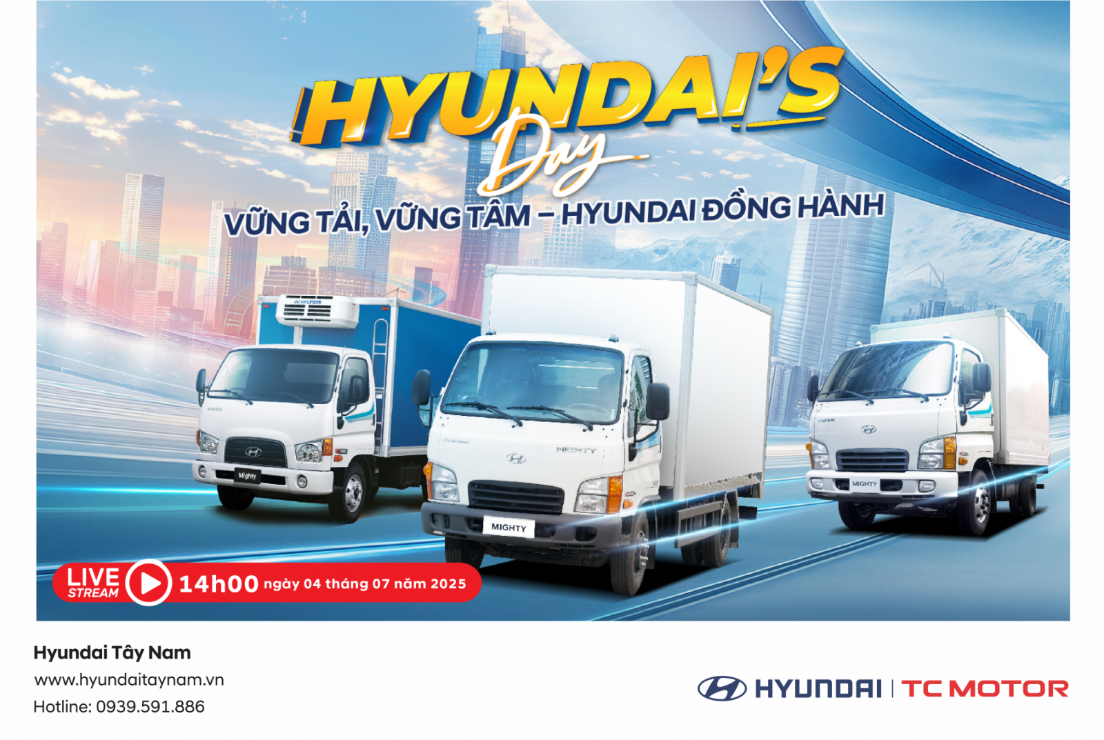 Thời gian: 14:00 ngày 04/07/2025, Livestream trực tiếp trên Fanpage Hyundai Tây Nam