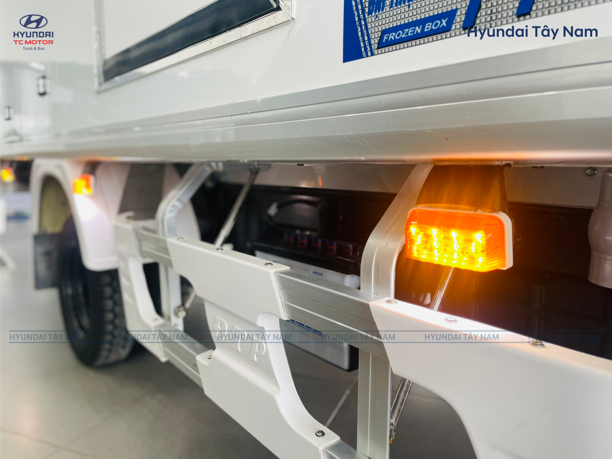 - Hệ thống chiếu sáng: là hệ thống đèn LED chiếu sáng tự động được lắp đặt ở trong thùng và xung quanh thùng xe.Đặt biệt các hện thống đèn LED trong thùng xe có khả năng chịu nước, chịu ẩm ở nhiệt độ âm sâu. Bộ phận này giúp đảm bảo đầy đủ ánh sáng ở trong thùng, đặc biệt hữu dụng trong quá trình sắp xếp và vận chuyển hàng hóa.