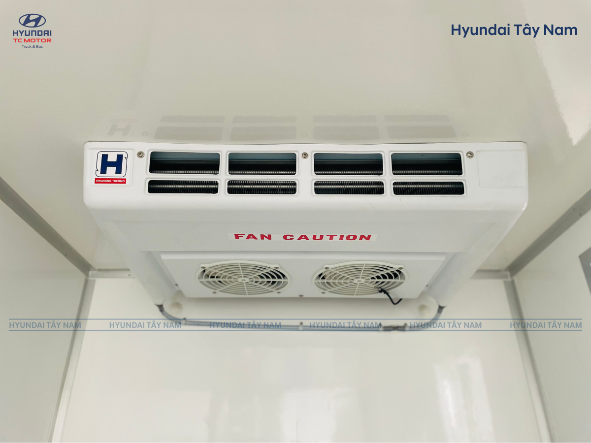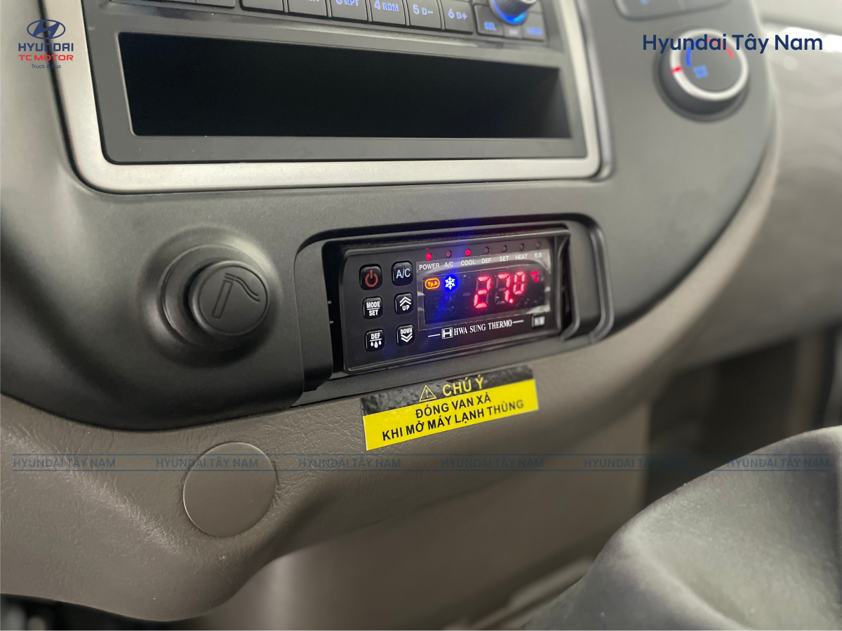 - Hệ thống máy lạnh: Hwasung Thermo HT-100 nhập khẩu Hàn Quốc độ lạnh sâu -18 độ C (Máy lạnh bảo hành 12 tháng) với độ lạnh âm sâu như thế này thì có thể chở được các mặt hàng tươi sống như rau củ quả, thủy hải sản, thịt, kem, sữa chua,...