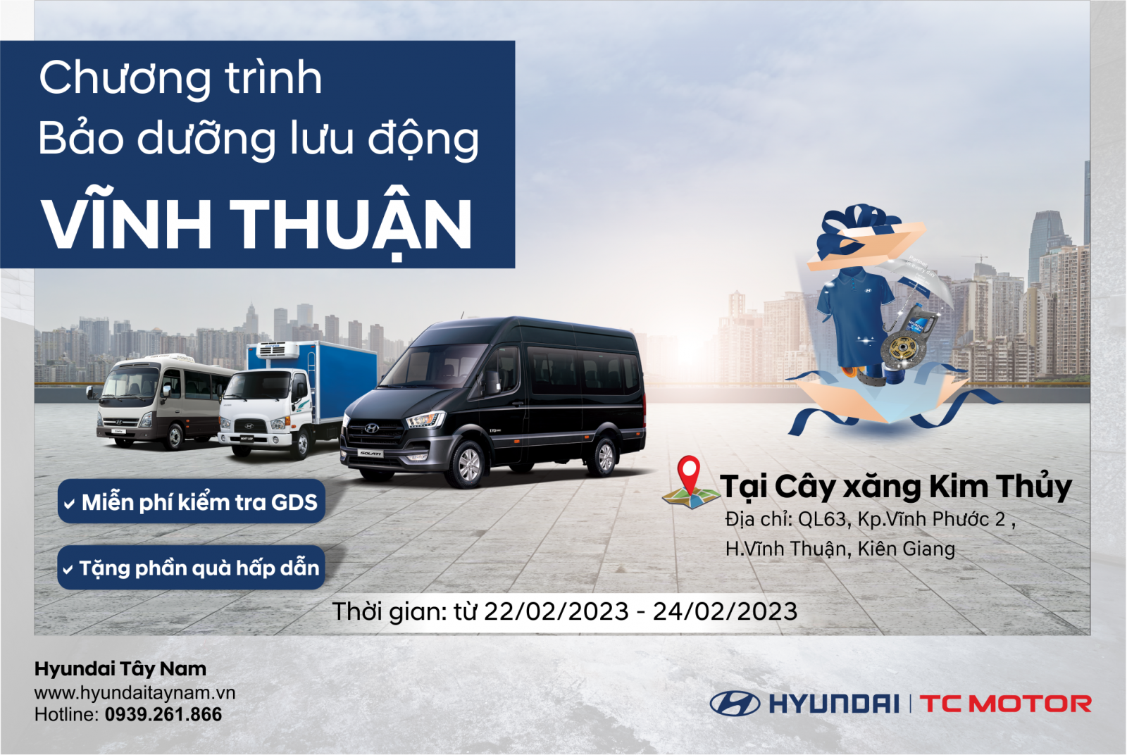 THÔNG BÁO CHƯƠNG TRÌNH BẢO DƯỠNG LƯU ĐỘNG TẠI HUYỆN VĨNH THUẬN