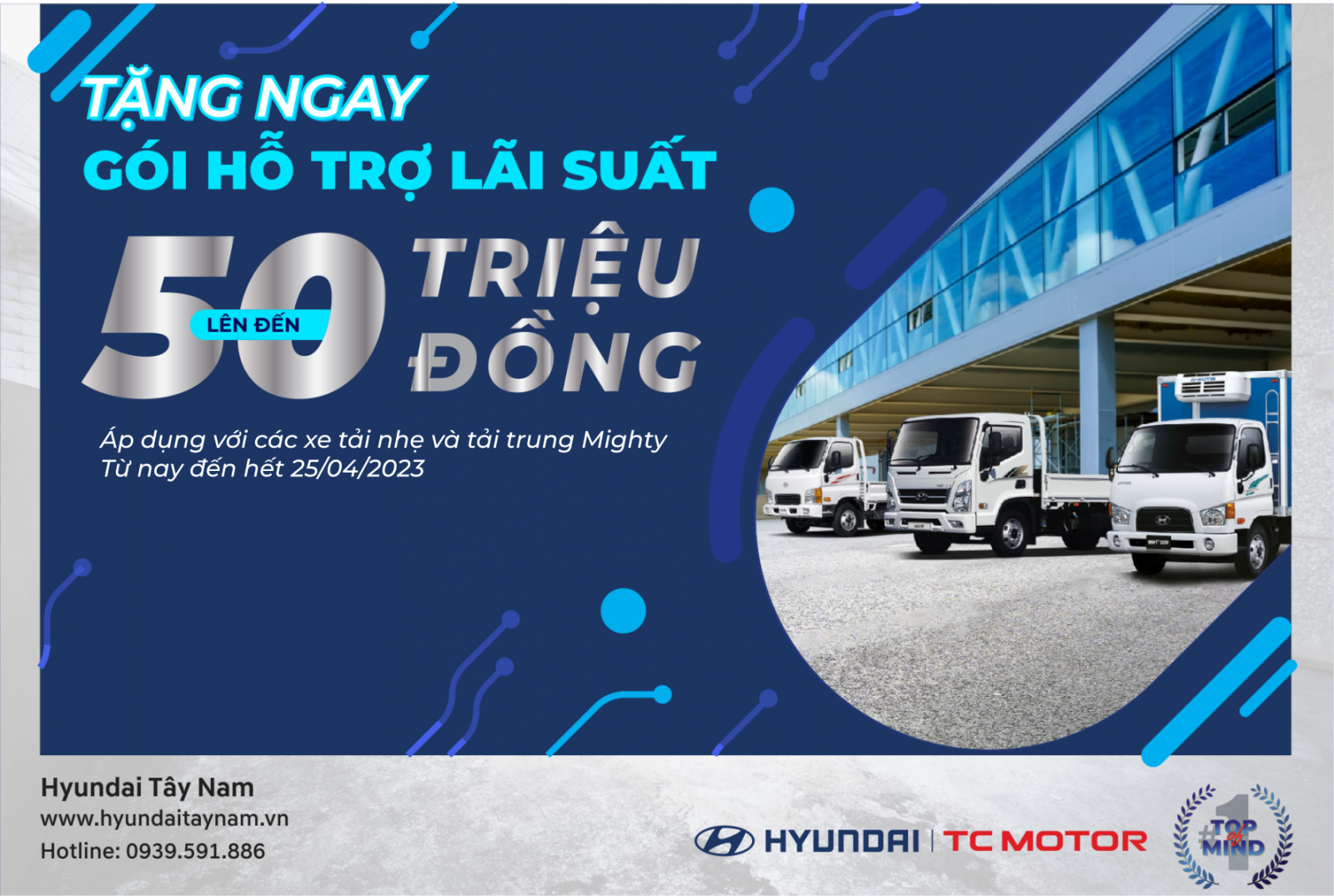 Khi mua các dòng tải nhẹ, tải trung tại hệ thống đại lý HTCV, quý khách hàng có cơ hội nhận ngay gói hỗ trợ lãi suất lên đến 50 triệu đồng/xe.