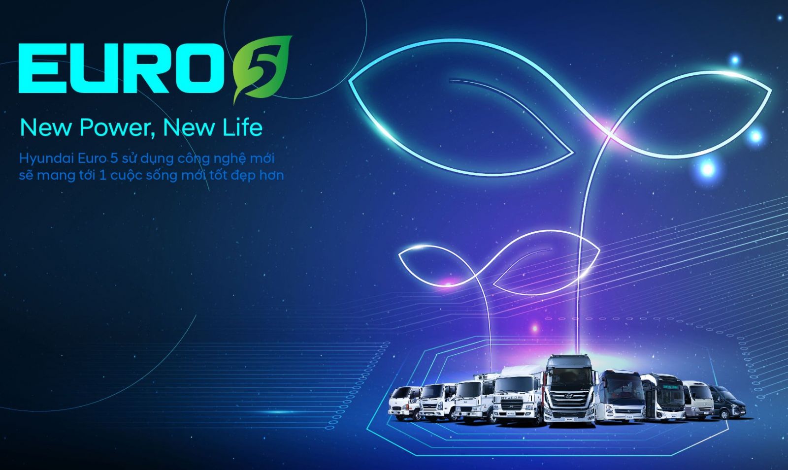 Công nghệ Euro 5 là một trong những công nghệ tiên tiến nhất trong ngành vận tải hiện nay, giúp hạn chế tối đa lượng khí độc hại thải ra môi trường của động cơ xe. Chính vì thế, động cơ Euro 5 là phiên bản hoàn hảo nhất tính đến thời điểm hiện tại, cải tiến mạnh mẽ so với các phiên bản trước đó, thân thiện với môi trường và mang một sứ mệnh giúp cho cuộc sống trong lành hơn, đúng với thông điệp mà Hyundai đưa ra "New Power - New Life".