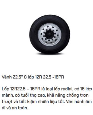 | Cỡ lốp xe (trước/sau) | 12R 22.5 - 16PR |