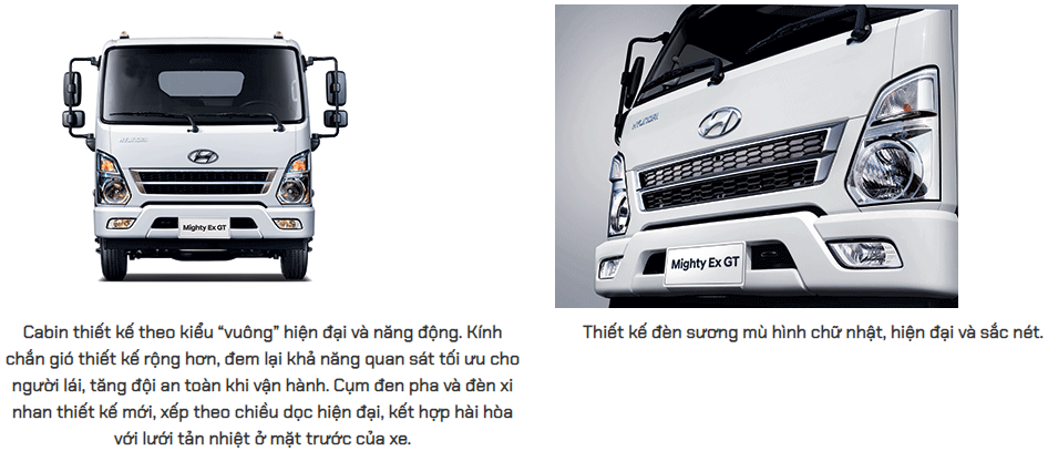 Mighty EX8 GTL là mẫu xe tải mới nhất của Hyundai tại Viêt Nam trong phân khúc tải trung, với những đổi mới mang tính đột phá cả về động cơ, kích thước, tải trọng cho đến thiết kế. Không chỉ là một chiếc xe với khả năng vận tải hàng hóa thông thường, Mighty EX8 GTL chắc chắn sẽ đem đến cho bạn những trải nghiệm vượt hơn cả mong đợi. Mighty EX8 GTL là sự kết hợp hoàn hảo giữa thiết kế hiện đại và tính ứng dụng cao. Cabin được thiết kế mang phong cách Châu Âu, theo kiểu “vuông” hiện đại và khác biệt.