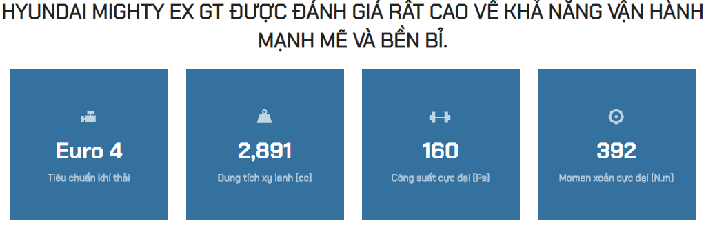 Mighty EX8 GTL là phiên bản mới thuộc dòng Mighty EX series. Kế thừa những nét thiết kế hiện đại và năng động, Mighty EX8 GTL mang lại những giá trị khác biệt cho người sử dụng. Mighty EX8 GTL sẽ trở thành một đối tác đáng tin cậy của bạn bằng cách mang tới sự an toàn trong khi vận hành, tối đa hóa sự thoải mái của bạn trên mọi hành trình và cuối cùng là mang lại hiệu quả cao cho công việc kinh doanh của bạn.