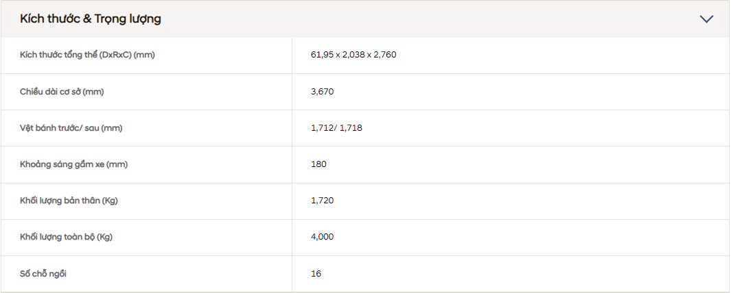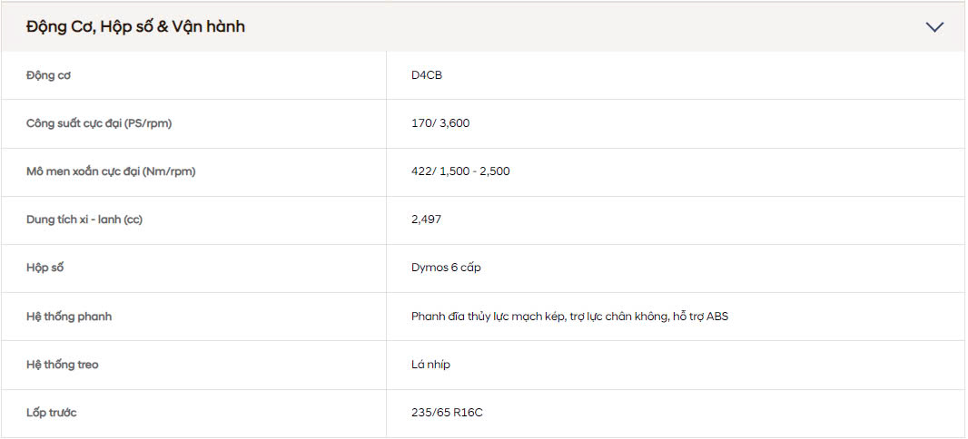 Hyundai Solati trang bị động cơ Euro V - Diesel 2.5L CRDi mạnh mẽ, sản sinh công suất tối đa 170 mã lực và mô-men xoắn cực đại 422 Nm. Động cơ của Hyundai Solati đạt tiêu chuẩn khí thải Euro 5, không sử dụng Ure, không chỉ giúp chung tay bảo vệ môi trường, mà còn đem lại hiệu quả vận hành vượt trội, tiết kiệm nhiên liệu, tiết kiệm chi phí vận hành. Hộp số sàn 6 cấp giúp xe vận hành mượt mà và tiết kiệm nhiên liệu. Hệ thống treo tiên tiến mang lại sự ổn định và êm ái trên mọi cung đường.