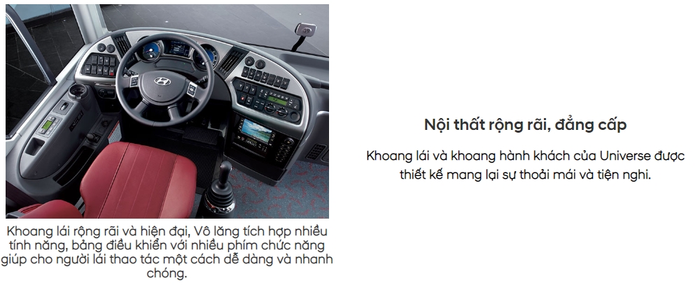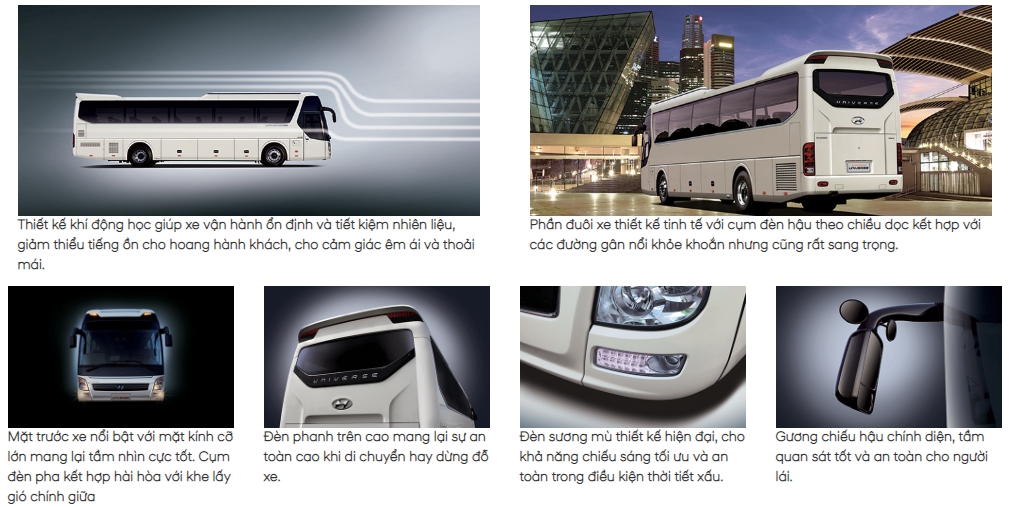 Hyundai Universe là dòng xe khách cỡ lớn cao cấp nhất của Hyundai. Thiết kế sang trọng và tinh tế đến từng chi tiết, trang bị cao cấp và tiện nghi,