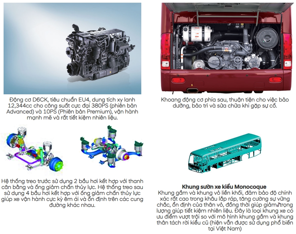 vận hành êm ái và mượt mà trên mọi hành trình, mang lại sự thoải mái tối đa cho hành khách. Có thể nói trong phân khúc xe khách cỡ lớn,